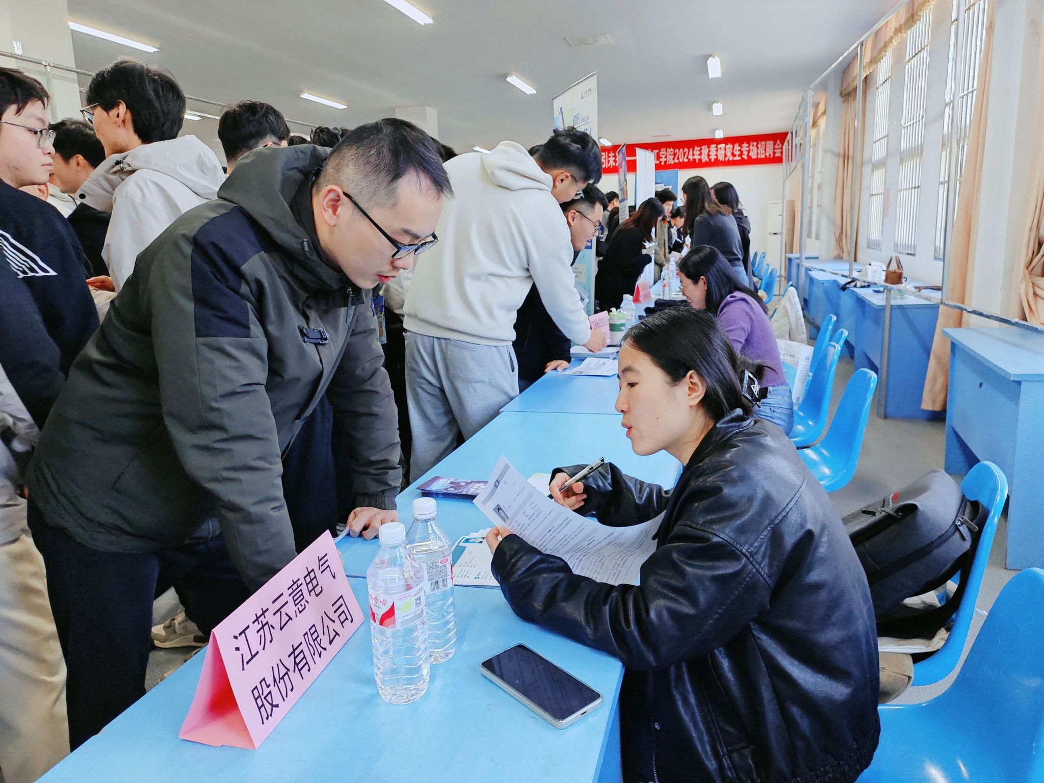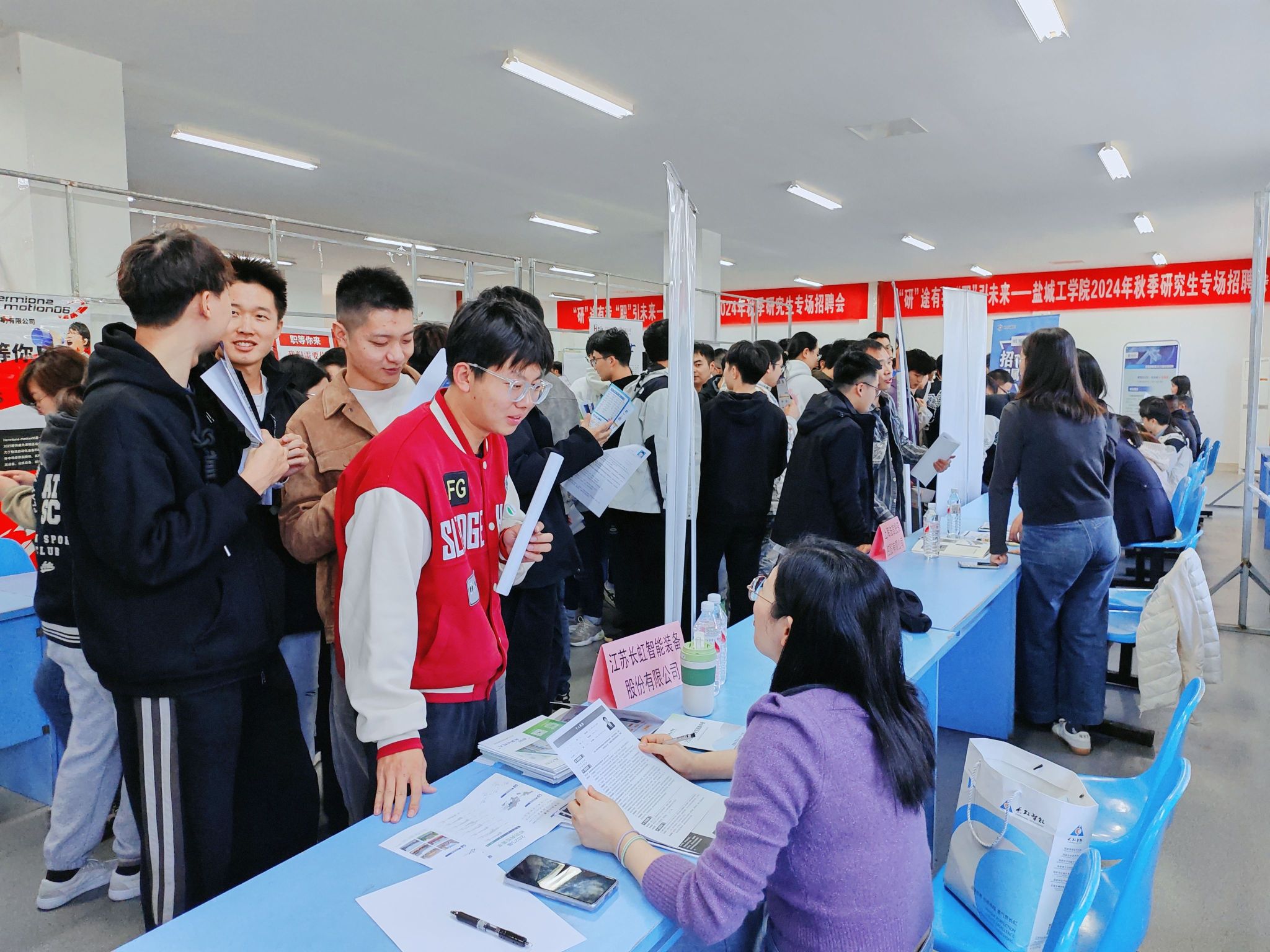此次招聘会共有中国工商银行盐城分行、康佳芯云半导体科技(盐城)有限公司、南玻院(宿迁)新材料有限公司、盐城粤海水务有限公司、扬州亚星客车股份有限公司等近30家企业到场参会,提供岗位470余个。毕业生们纷纷踊跃参加,投递简历760余份,研究生院将持续关注后续签约情况。