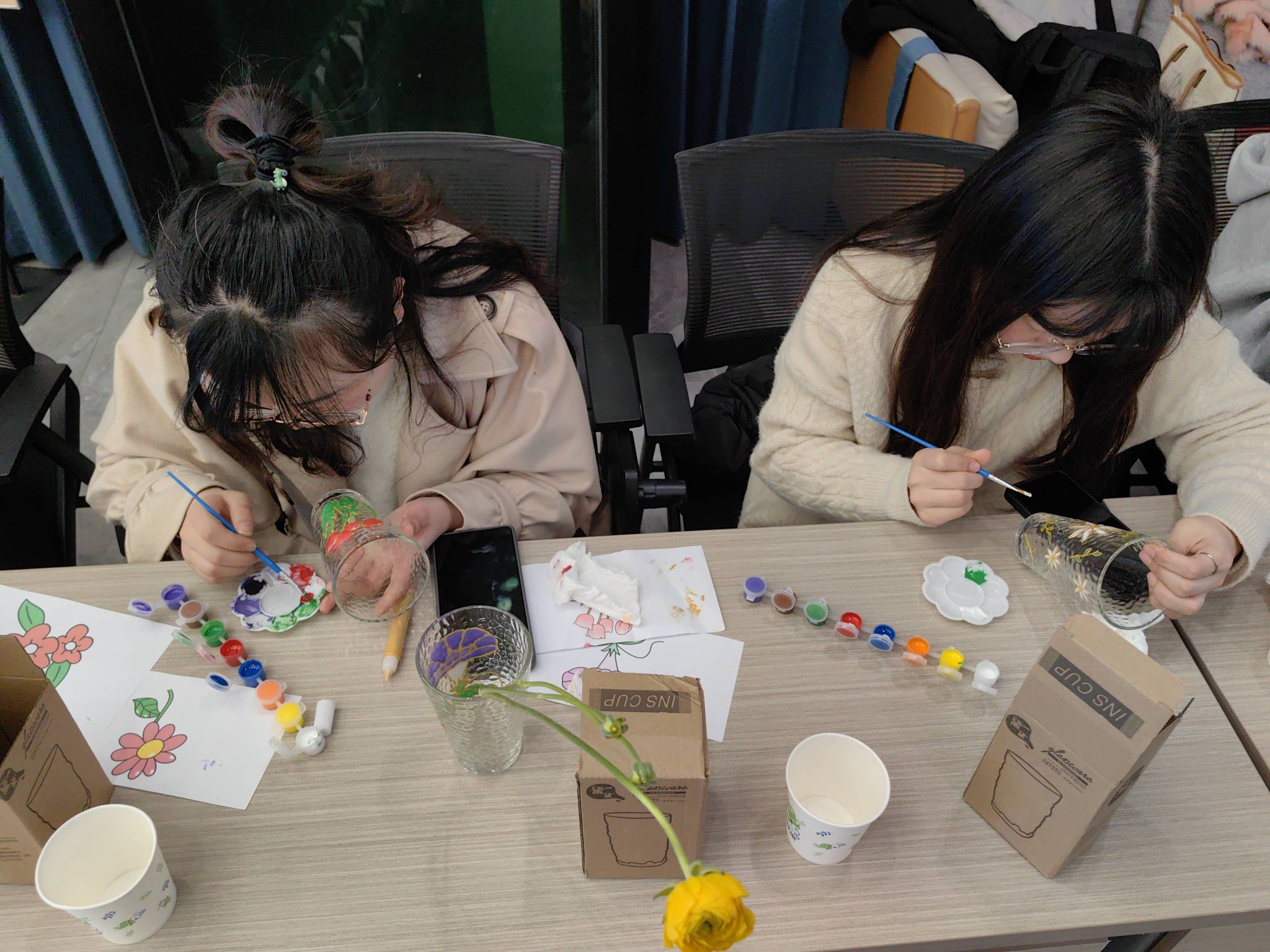此次活动受到了同学们的热烈欢迎,趣味的文娱运动形式为此次活动带来了不一样的乐趣,让同学们的身心得到了放松。听歌识曲、构思插花、水杯绘制、数字油画、踢毽子比赛、呼啦圈比赛等环节吸引同学们踊跃参与。开场的听歌识曲将现场气氛推至高潮。在之后的构思插花中,老师和同学们充分发挥自己的想象力与创造力进行艺术创作,有的以粉色百合花为主,寓意着祖国繁荣富强;有的以黄色雏菊为主,寓意积极阳光。风格各异的插花作品包含着大家的巧妙构思。会场两旁的数字油画和水杯绘制进行地有条不紊。为促进同学们德、智、体、美、劳全面发展,以踢毽子和转呼啦圈的比赛形式,呼吁同学们积极参加运动,每组5人比赛,女生们拼尽全力、争分夺秒,最后统计踢毽子的个数和转呼啦圈的时长评出奖项,颁发给“最美女生们”。