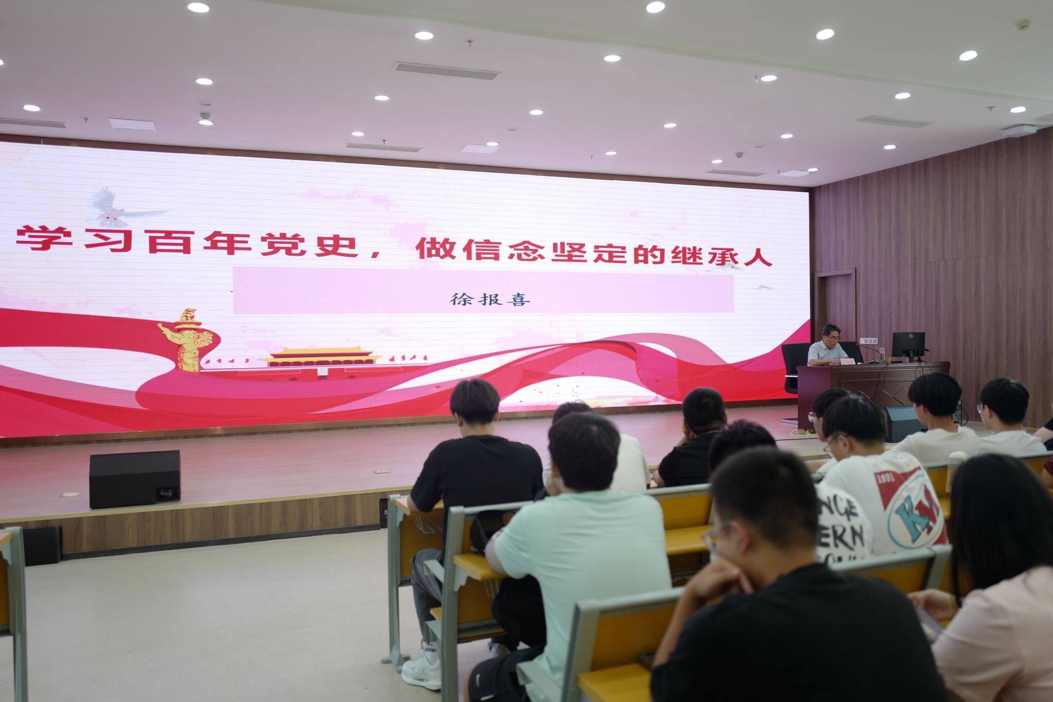 新生入学教育之理想信念教育。徐报喜以“学习百年党史,做信念坚定的继承人”为主题,从“百年党史的艰辛与辉煌”、“新时代中国再出发”、“赓续共产党人精神血脉,做信念坚定的继承人”三个部分进行阐述。习近平总书记曾说,“心有所信,方能行远,走好新时代的长征路,我们更需要坚定理想信念,矢志拼搏奋斗。” 将理想信念教育做为研究生入学教育的第一讲,更好地铸牢学生信仰之基,补足学生精神之钙。