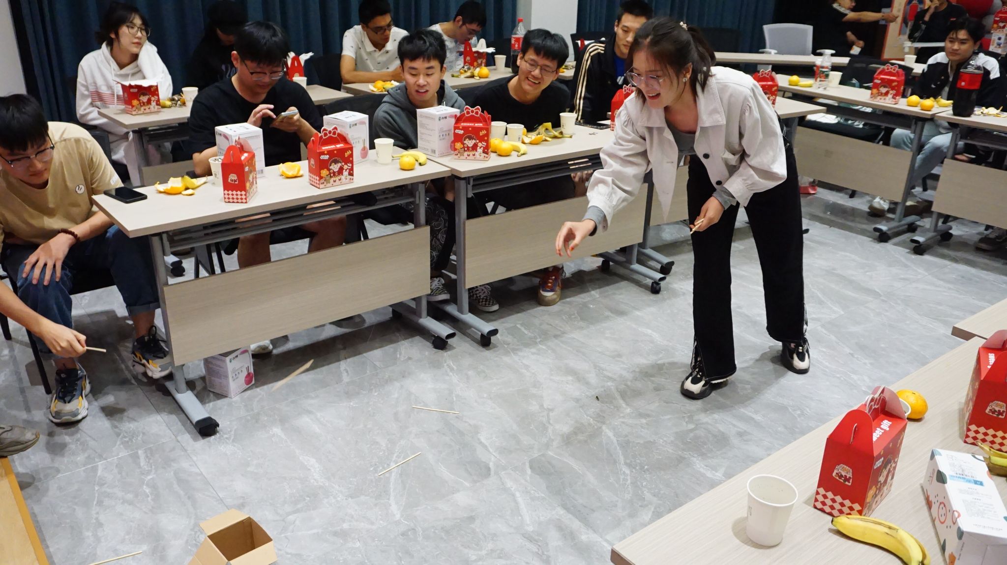 许伟院长在致辞中向同学们致以节日的诚挚问候,祝愿同学们在盐工度过美好的三年时光。随后领导老师们与同学们就学习,生活等问题进行亲切交谈,对同学们提出的问题进行热情解答。活动现场气氛热烈,充斥着欢声笑语,活动氛围在击鼓传花、你划我猜、巧猜灯谜、知识问答、投壶等游戏中一步步推向高潮。