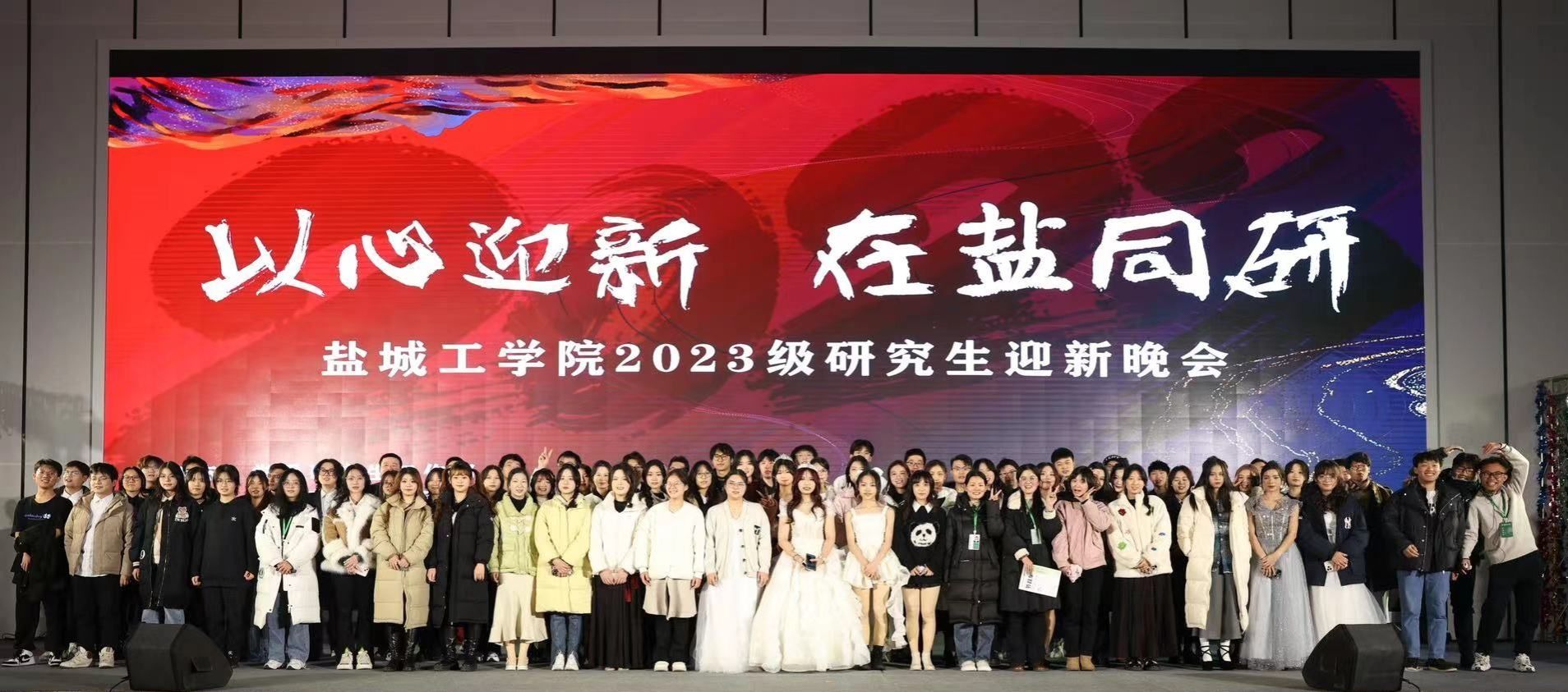 2023年12月22日晚19:00,“以心迎新,在盐同研”2023级研究生迎新晚会在盐南高新区科技广场一楼报告厅隆重举行,校党委常委、副校长崔刚,党委学工部部长、学生处处长徐新华,校团委书记杨秀丽,党委研工部部长、研究生院院长许伟,设计艺术学院党总支书记胡凌霞,材料科学与工程学院院长罗驹华,信息工程学院院长王如刚,环境科学与工程学院院长陈天明,海洋与生物工程学院党总支书记高留才,海洋与生物工程学院院长彭斌,以及研究生培养与管理相关部门和学院的老师与2023级全体研究生近六百人共同观看了晚会。