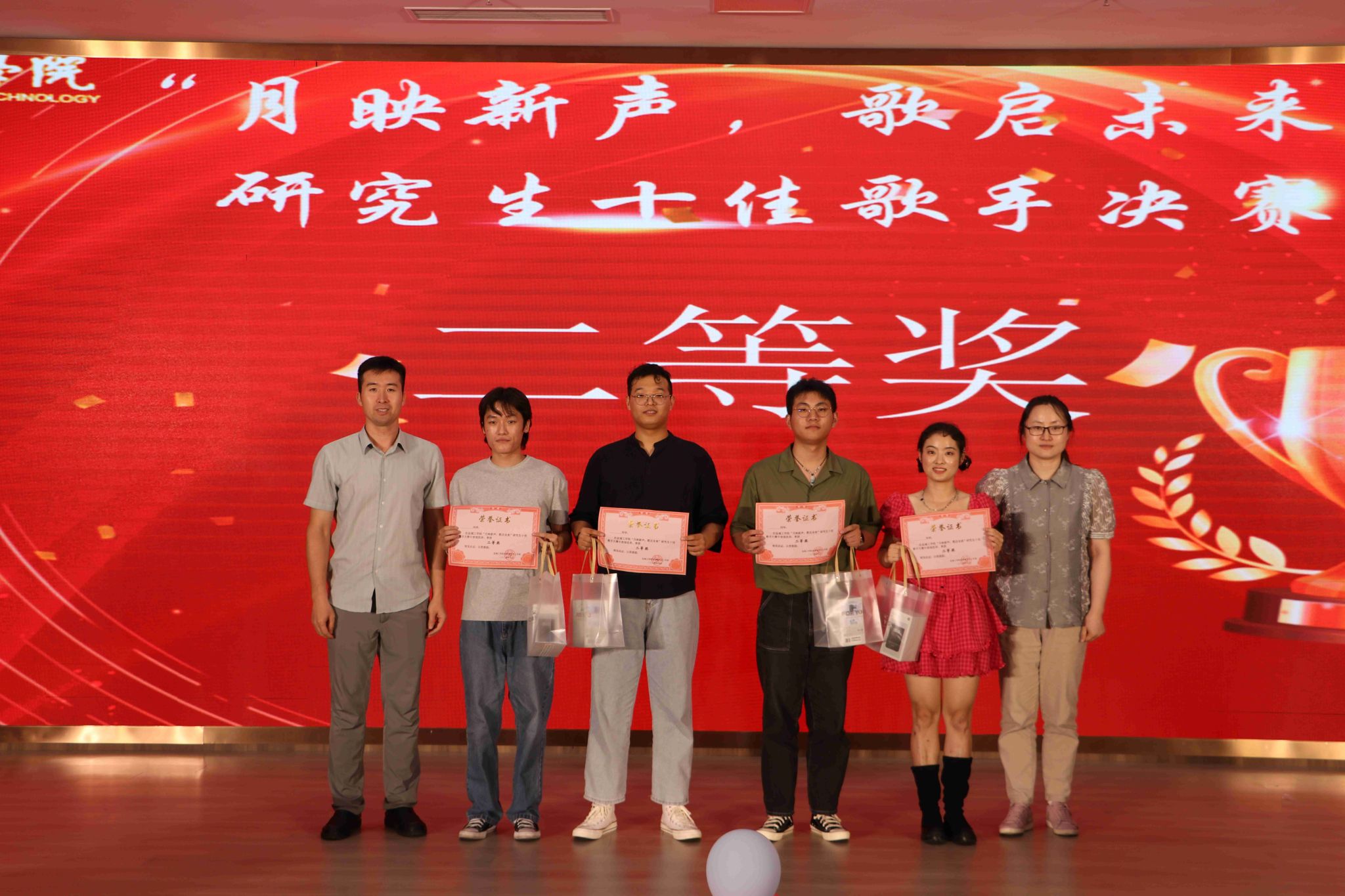 经过初赛和复赛,最终十位选手脱颖而出,站上了决赛的舞台。比赛在汪金辉同学的开场歌曲《新贵妃醉酒》中拉开帷幕。随后,来自不同学院的十位选手依次登台演绎,他们风格各异,歌曲题材多样,每一位都尽显才华,为观众带来了一场视听盛宴。孙玉涵同学深情演绎的《背对背拥抱》,仿佛诉说着一段无法言喻的爱与遗憾;丁嘉诚同学以一曲《年少有为》引起了全场的共鸣;田丰桦同学用《牵手》演绎了一段如诗如画的情感旅程;崔明豪同学的《遥远的她》将粤语歌曲中的细腻和怀旧展现得淋漓尽致;陶倩同学以一曲《Dance Monkey》带来了全场的欢腾,现场掌声雷动,气氛瞬间达到高潮;高子杰同学演唱的《水星记》带给听众一种如梦似幻的听觉体验;胡雪欣同学以《青春修炼手册》活力四射的表演博得了全场喝彩;丁源同学的《笑忘书》为比赛增添了一份浓厚的艺术氛围;田旭同学深情演绎《你就不要想起我》,用真挚的情感激发起观众内心强烈的共鸣;最后,王吉祥同学的《Last Dance》给比赛划上了一个完美的句号。经过紧张激烈的角逐,最终陶倩同学获得一等奖,胡雪欣等四位同学获得二等奖,崔明豪等五位同学获得三等奖。