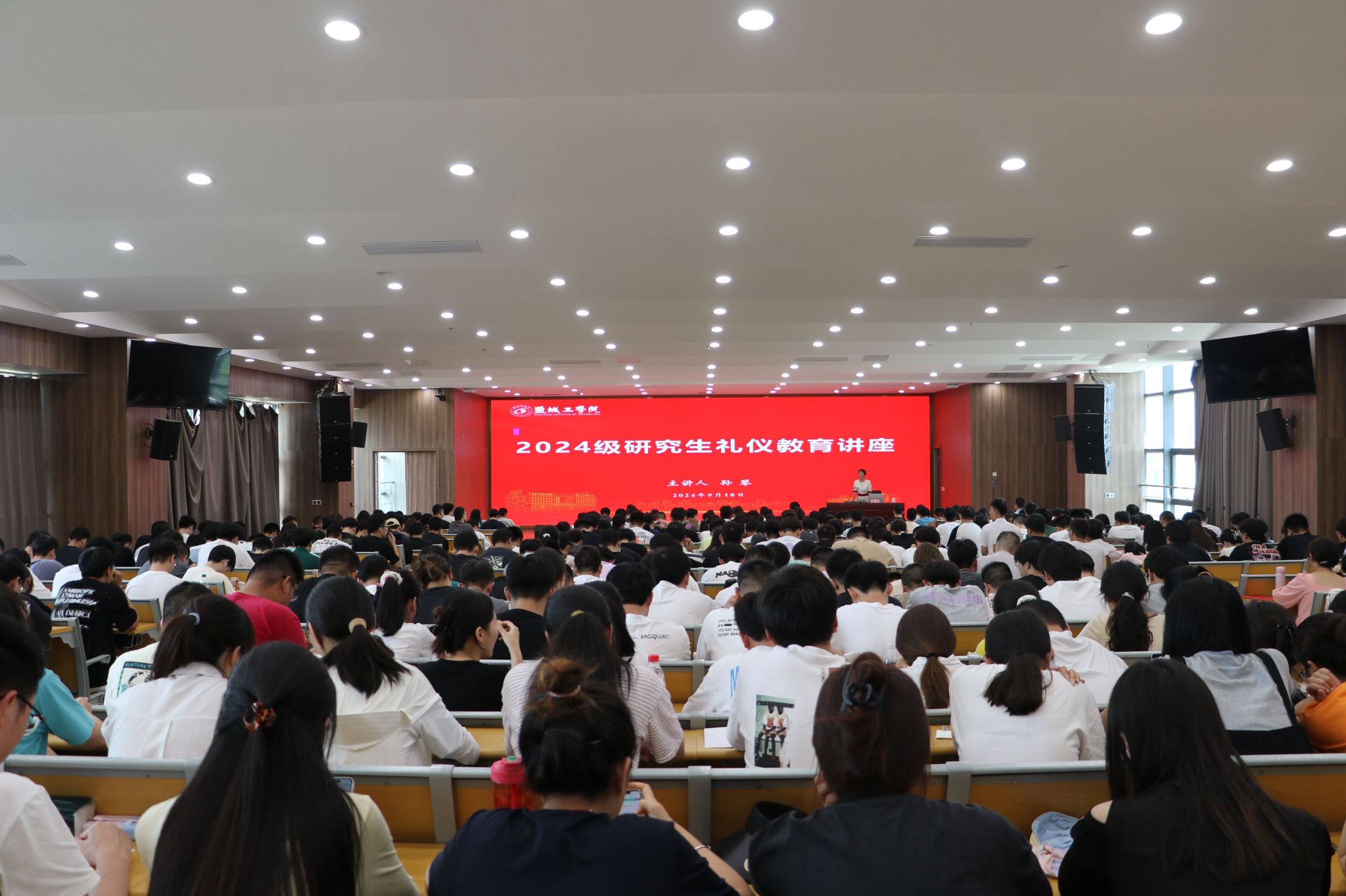 9月18日下午,党委研工部邀请原校工会主席孙琴在盐龙湖先进技术研究院六楼报告厅作礼仪与沟通专题教育讲座,党委研工部副部长、研究生院副院长姜华主持,研究生辅导员及全体2024级研究生参加。