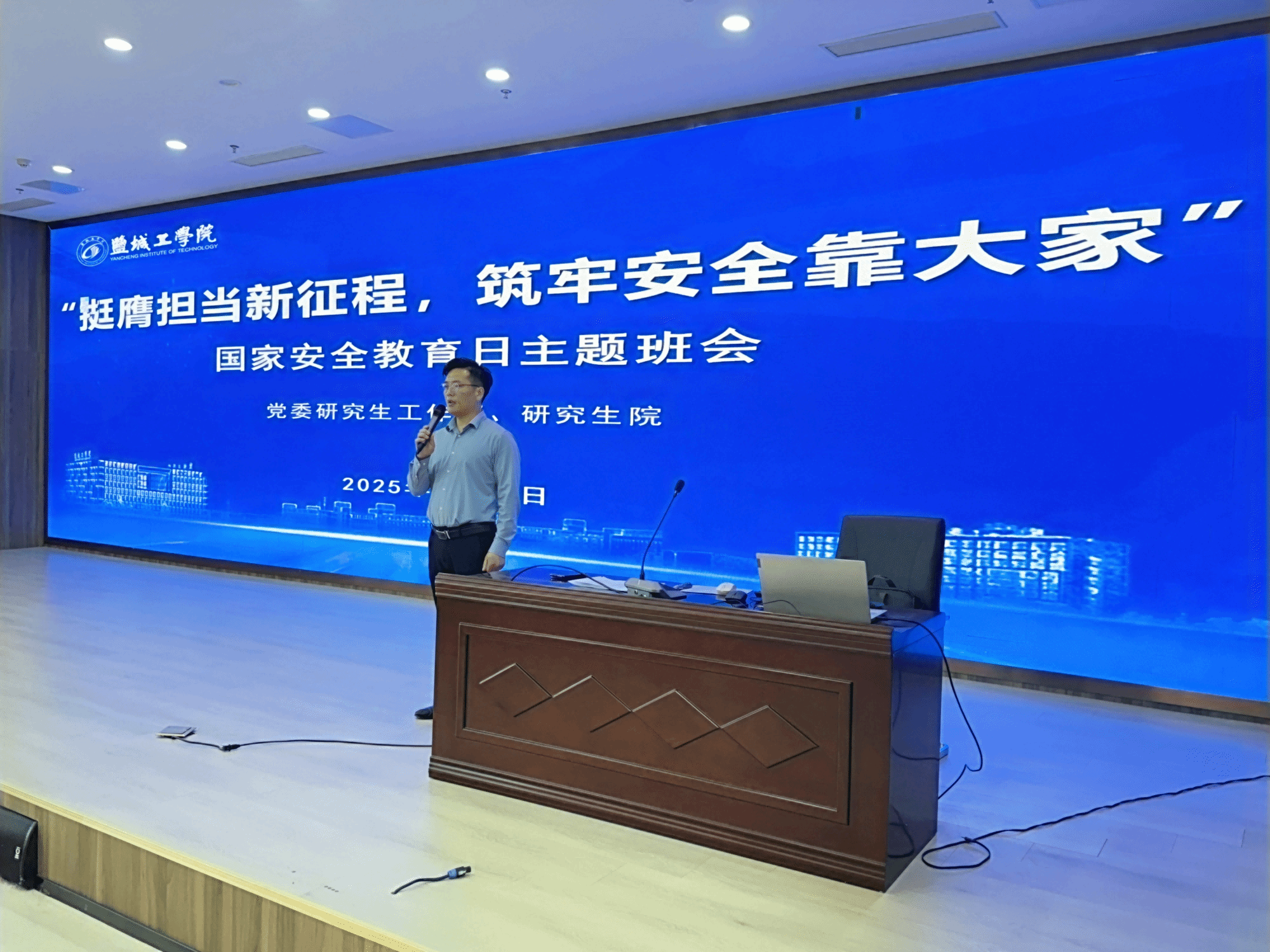 2025年4月15日是第十个全民国家安全教育日。为深入贯彻总体国家安全观,着力增强研究生国家安全意识和法治意识,共筑国家安全防线,党委研究生工作部在盐龙湖校区教学楼报告厅组织开展“挺膺担当新征程,筑牢安全靠大家”国家安全教育日主题活动,活动由研究生工作办公室副主任王威力主持,2024级研究生参加。
