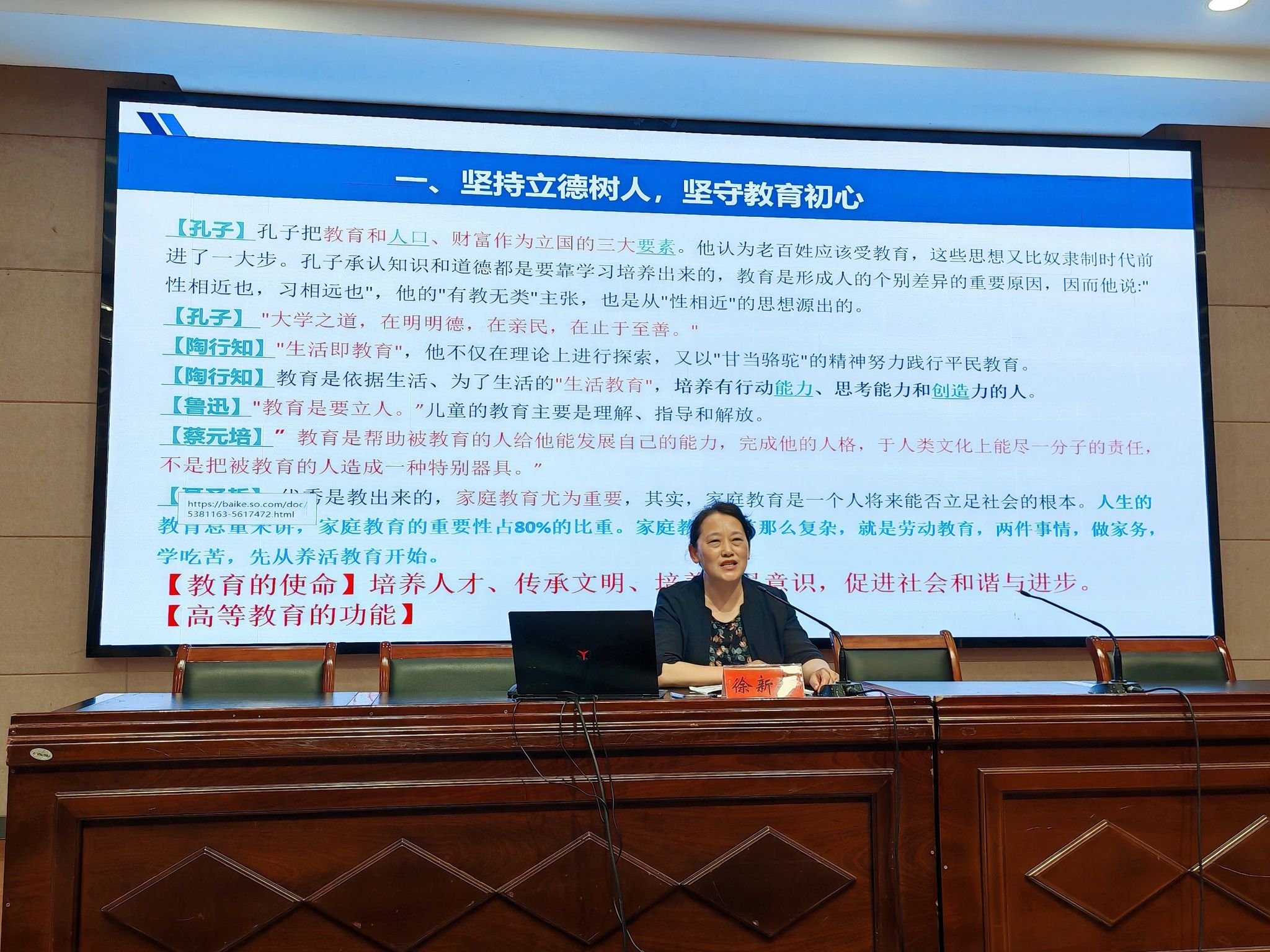 徐新华以深厚的文化底蕴和丰富的教育经验,深入探讨了教育的初心与使命。她引用古今中外教育大家的名言,如孔子的 “有教无类”、陶行知的 “生活即教育” 等,强调教育在培养人才、传承文明以及促进社会和谐进步方面的关键作用,鼓励研究生认识到自身在教育传承与发展中的重要地位,从而增强责任感和使命感。在职业道德培养方面,她详细解读了《公民道德建设实施纲要》中关于职业道德的要求,从社会公德、职业道德、家庭美德和个人品德的层面,阐述了在新时代背景下研究生应如何坚守职业道德底线,提升自身的道德认知与实践能力。她结合实际案例,深入分析了职业道德在科研、教学等不同场景中的具体体现,让同学们对职业道德有了更直观、深刻的理解。