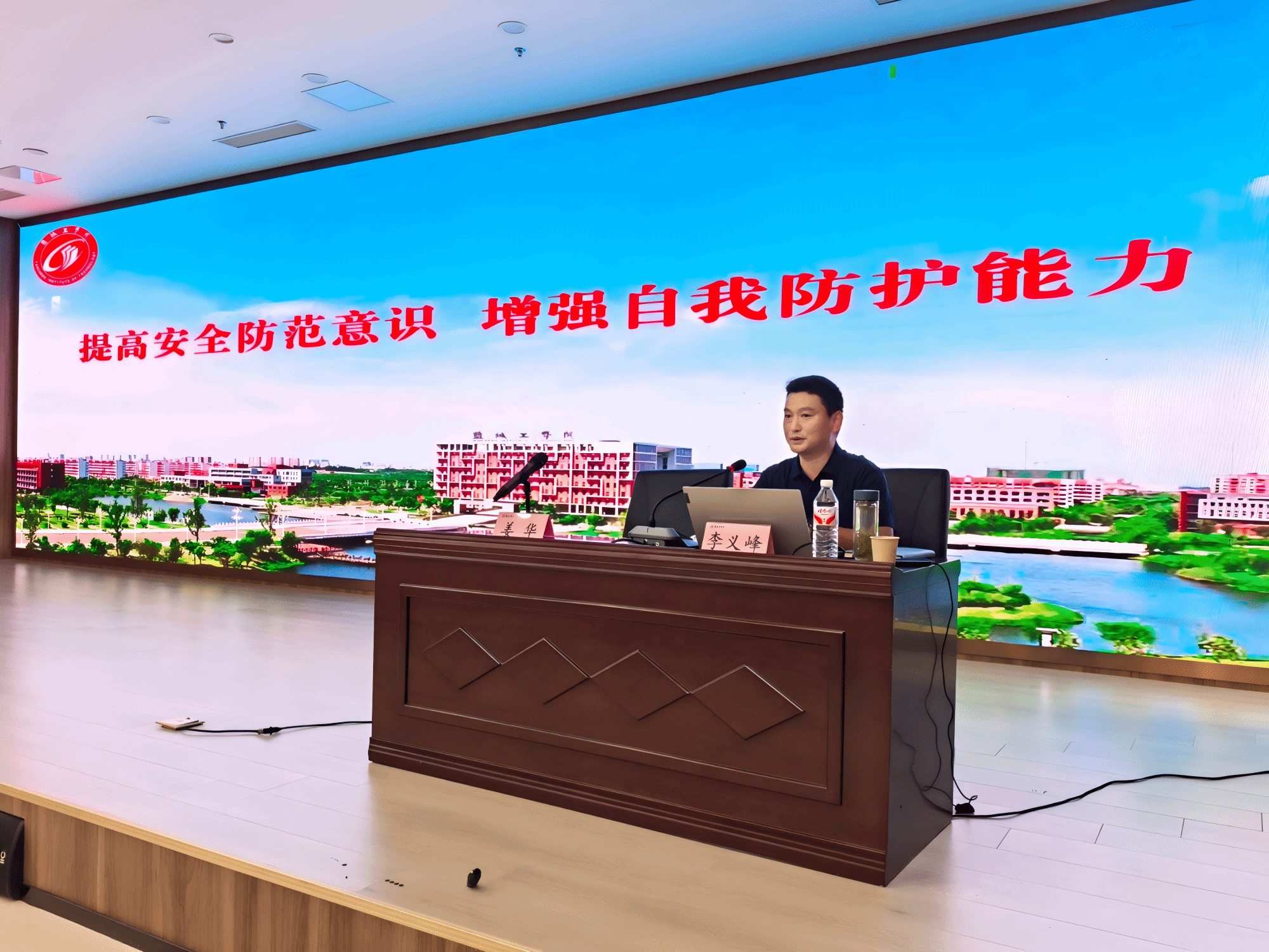 李义峰围绕“提高安全防范意识,增强自我防护能力”主题,分别从消防安全、防诈骗、遵纪守法和交通安全等四大领域展开细致讲解。通过剖析真实案例,他引导学生深刻认识校园安全的重要性,掌握必要的防范技能,切实提升自我保护能力。