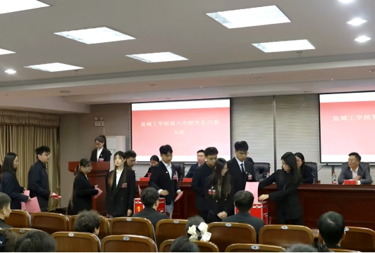 本次大会的常任代表候选人由各学院研究生会推荐,并经学院党委(总支)审核同意。会议严格秉持“公平、公正、公开”的原则,经各代表团充分酝酿和民主选举,成功选举产生盐城工学院第六次研究生代表大会常任代表14名、研究生会主席团成员5名。会上,筹备组副组长沈浩宣读了《关于〈盐城工学院第六次研究生代表大会工作报告〉的决议》。