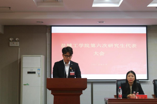 10月29日下午,盐城工学院第六次研究生代表大会第一次全体会议在图书馆报告厅隆重举行。大会在庄严的氛围中拉开帷幕,研代会筹备组组长丁源代表筹备组作了题为《赓续传承,凝心聚力谱华章;奋楫开拓,继往开来铸新绩,为建设国内一流高水平应用型大学拼搏奋斗》的工作报告。报告系统回顾了第五次研代会以来我校研究生会开展的各项工作与取得的主要成绩,并对下一阶段研究生会的发展方向与重点任务作出了规划与展望。党委研究生工作部部长、研究生院院长许伟,党委研究生工作部副部长、研究生院副院长姜华及全体研究生代表参加会议。