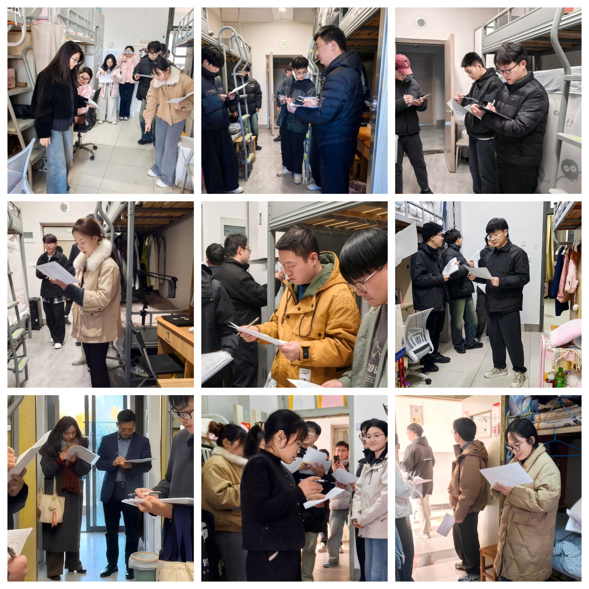 为了加强研究生宿舍卫生安全管理质量,营造整洁健康的生活学习环境,促进学生劳动品质与实践能力的全面发展。党委研究生工作部根据《关于开展2025年研究生“文明寝室”评选活动的通知》要求,精心组织,成立了文明寝室评选工作组,由各学院研究生辅导员牵头,协同校研究生会、研代会常任代表及院学生干部代表共同组成,走进各学院研究生宿舍,开展安全与卫生环境检查,推进文明寝室评比工作,同时了解并关心学生的日常生活状况。