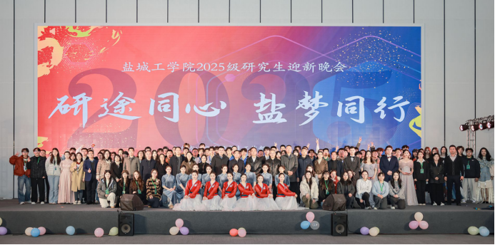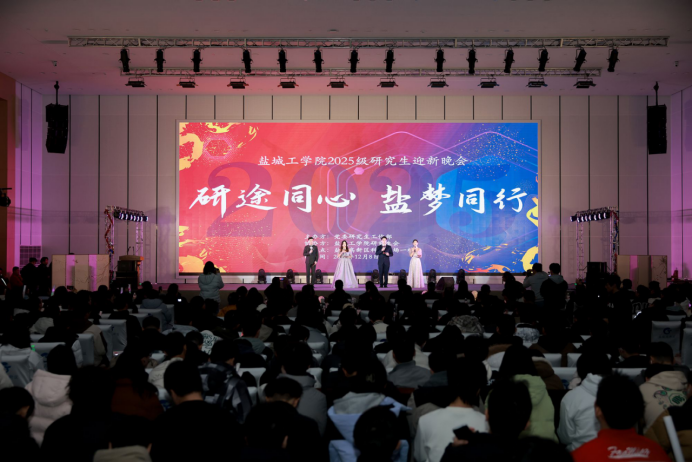 12月8日晚,学校“研途同心,盐梦同行”2025级研究生迎新晚会在盐城高新技术产业开发区科技广场一楼报告厅隆重举行。党委书记周如军,校长、党委副书记邵荣,党委常委、副校长张勤芳,党委常委、宣传部部长奚新国,党委常委、组织部部长包雅玮等出席。相关职能部门、各二级学院负责人,研究生辅导员,2025级全体研究生等600余人参加。