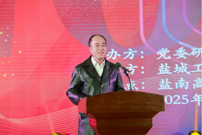 晚会伊始,邵荣代表学校全体师生员工向2025级研究生新同学表示热烈欢迎和诚挚祝福,并向筹备晚会的师生致以衷心感谢。他回顾了学校近年来在学科建设、研究生教育等方面取得的瞩目成绩,包括多个学科进入ESI全球排名前1%、学科建设实现历史性跨越等,并介绍了学校优质的科研平台与培养条件。面对新时代的机遇与挑战,他向全体新生提出三点殷切希望:一要胸怀家国,做有志气的攀登者,将个人理想融入国家需求,勇于投身关键领域技术攻坚;二要严谨求实,做有韧性的探索者,秉承“厚德格致、笃学重行”的校训,脚踏实地,锤炼本领,坚守科研诚信;三要守正创新,做有魄力的开拓者,敢于挑战前沿,在跨学科交叉与实践中激发创新活力。他勉励同学们珍惜时光,在盐工这片热土上书写无愧于时代的青春篇章。