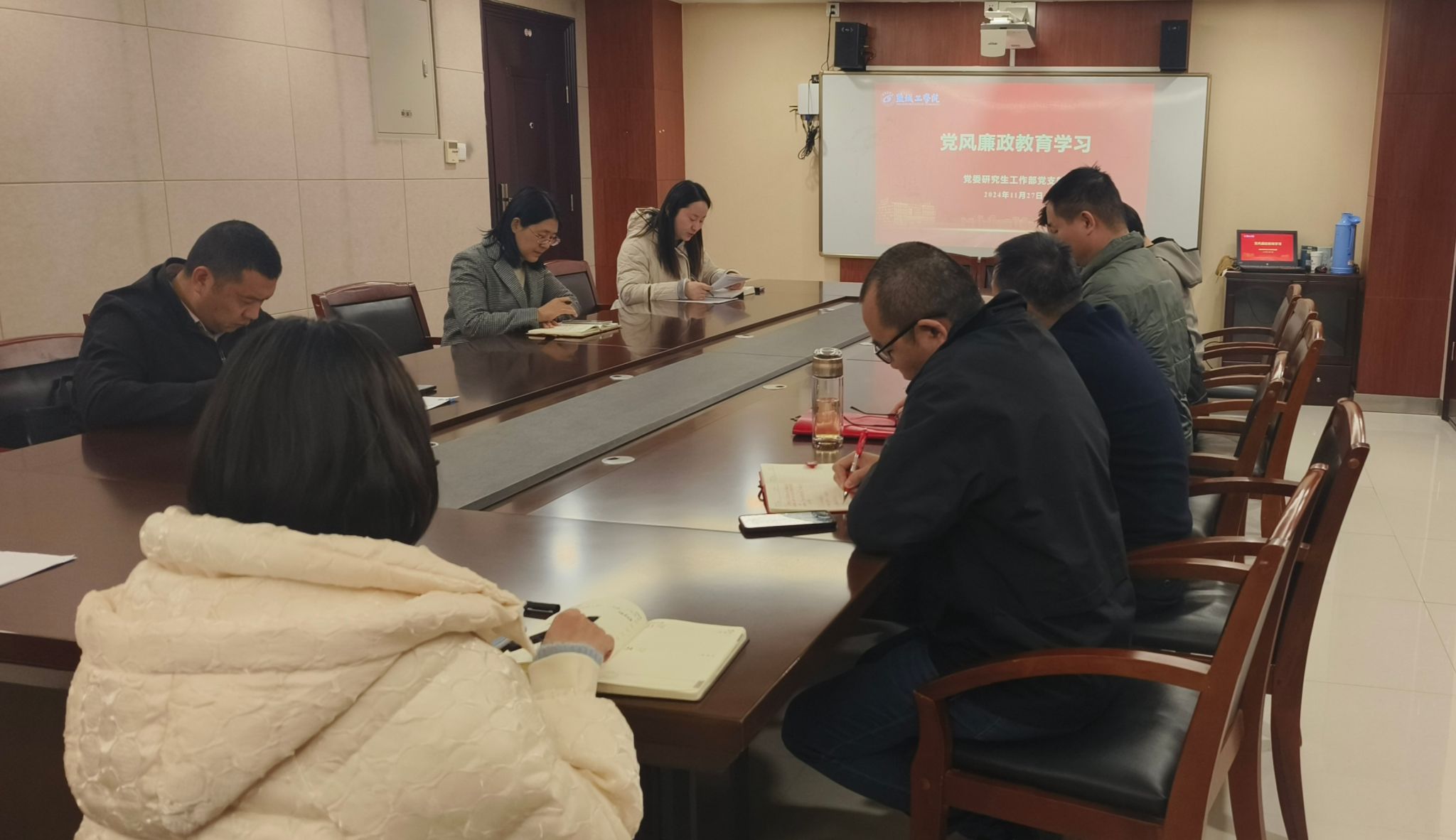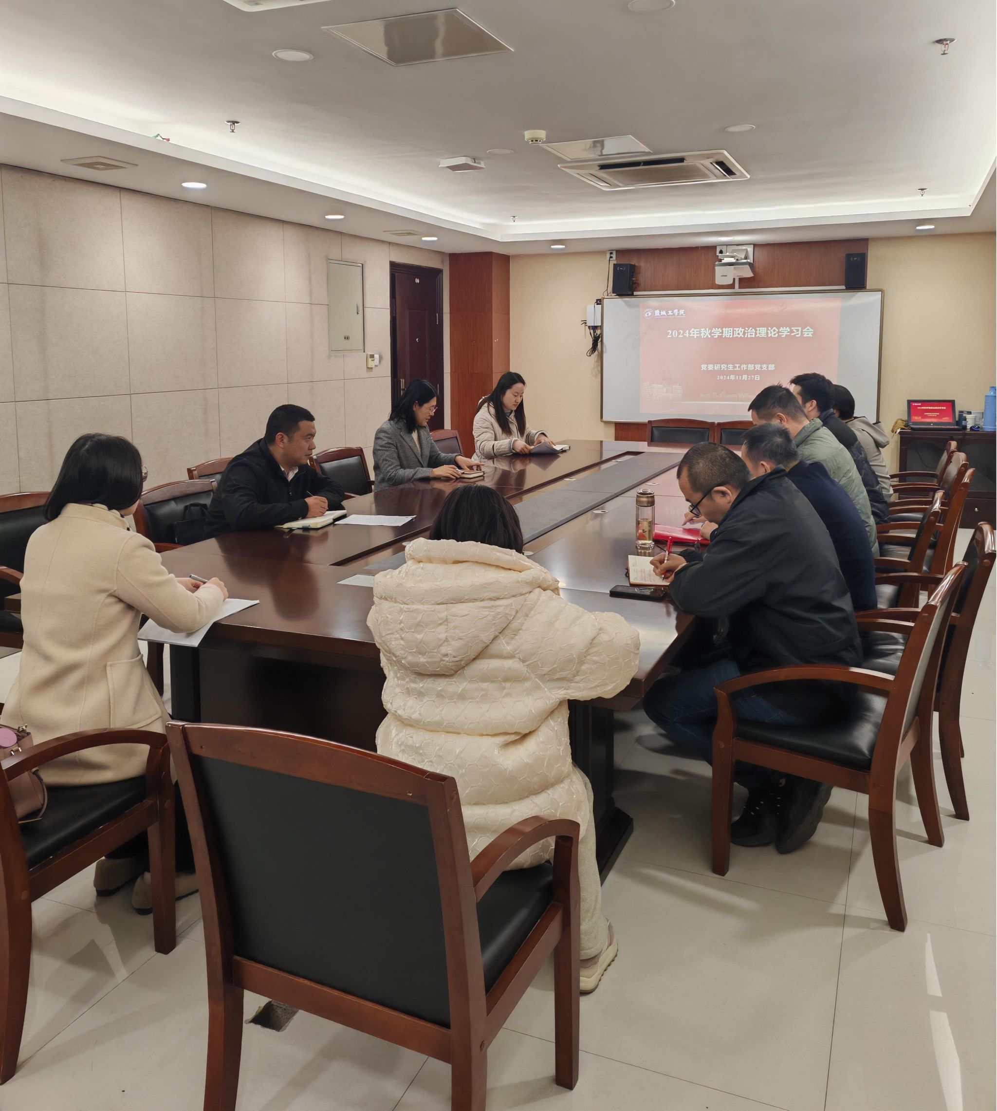 11月27日下午,在行政楼428会议室,党委研究生工作部党支部召开秋学期第三次政治理论学习会和党风廉政教育专题学习,围绕《培养德智体美劳全面发展的社会主义建设者和接班人》、《论教育》《新时代高校教师职业行为十项准则》等相关内容展开学习。党委研究生工作部部长、研究生院院长、学科建设办公室主任许伟主持,研究生工作部副部长、研究生院副院长姜华领学,支部全体成员参加。