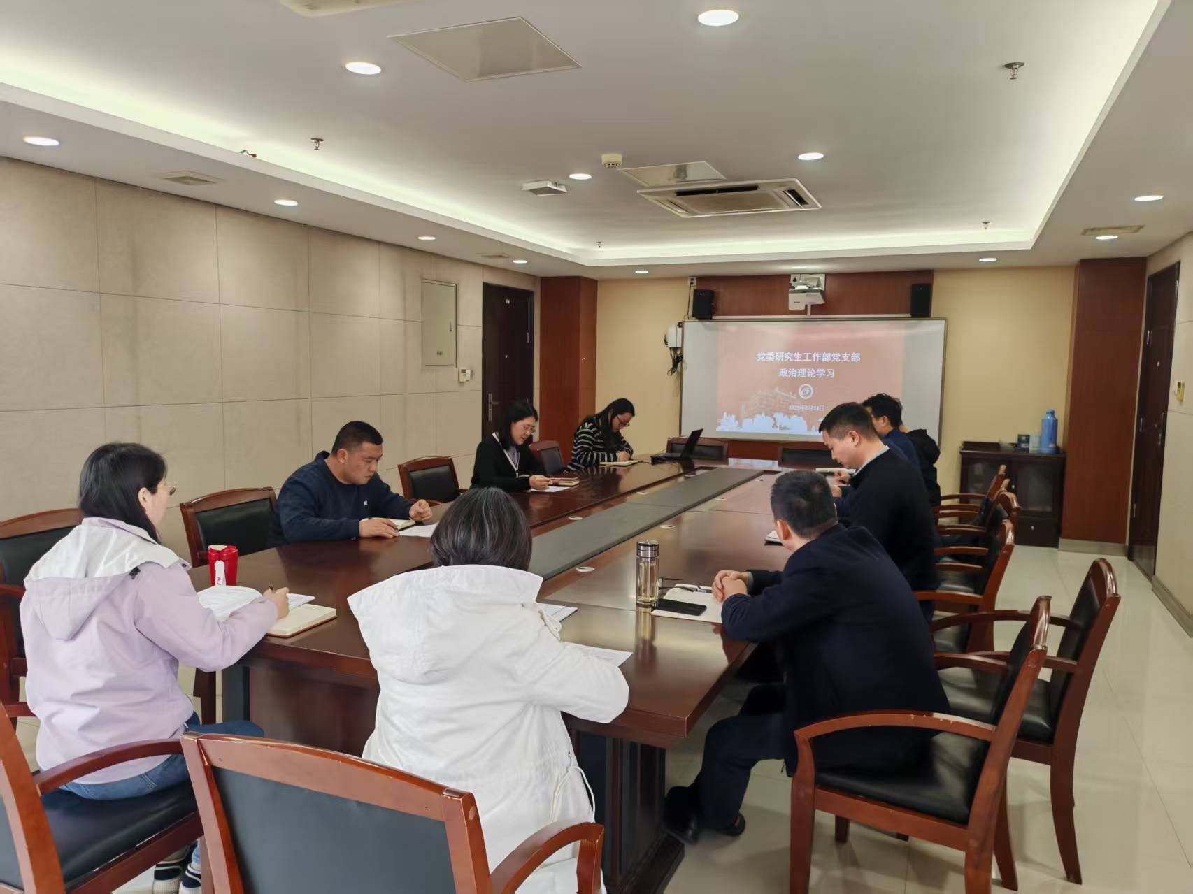 3月24日下午,在行政楼428会议室,党委研究生工作部党支部召开春学期第一次政治理论学习会,深入学习贯彻2025年全国两会精神,结合习近平总书记关于教育的重要论述以及《教育强国建设规划纲要(2024—2035年)》,共同谋划推动研究生教育事业的高质量发展。党委研究生工作部部长、研究生院院长、学科建设办公室主任许伟主持并领学,支部全体成员参加。