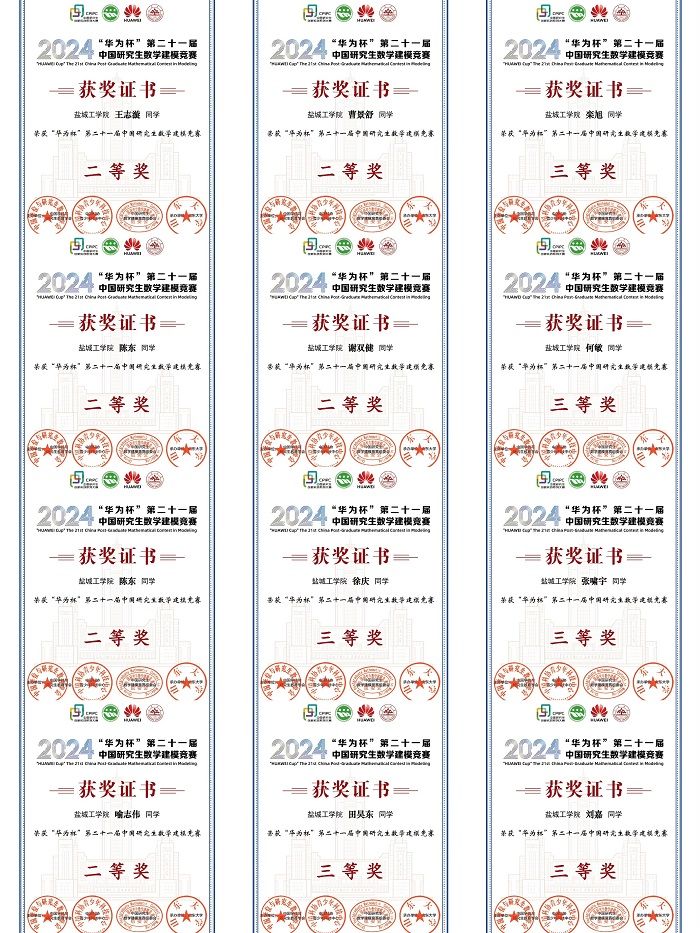 近日,“华为杯”第二十一届中国研究生数学建模竞赛成绩公布,我校研究生在比赛中再创佳绩,荣获全国二等奖2项、三等奖2项。本届大赛于2024年9月21-25日举行,共吸引来自国际和全国各省、自治区、直辖市、特别行政区共521个研究生培养单位的20247支研究生队伍参赛,国内国际赛道共评选出一等奖242队(获奖比例为1.19%),二等奖2742队(获奖比例为13.54%),三等奖3927队(获奖比例为19.39%)。