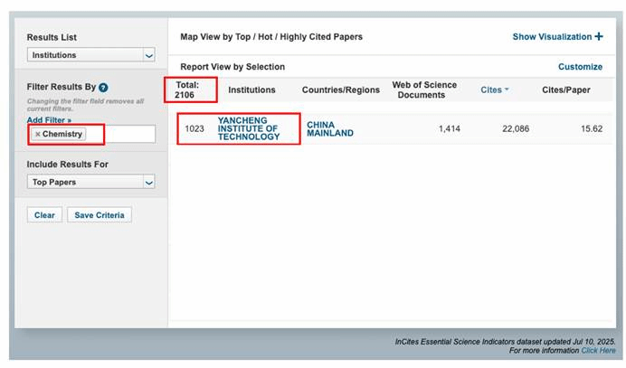 近日,科睿唯安(Clarivate Analytics)集团发布了最新一期《基本科学指标集》(Essential Science lndicators,简称ESI),数据显示我校化学学科全球排名1023位,首次进入全球排名前5‰,也是我校继工程学和材料科学之后,第3个进入全球排名前5‰的ESI学科,标志着我校学科建设水平持续提升。目前,我校工程学、化学、材料科学、环境/生态学4个学科保持ESI前1%。