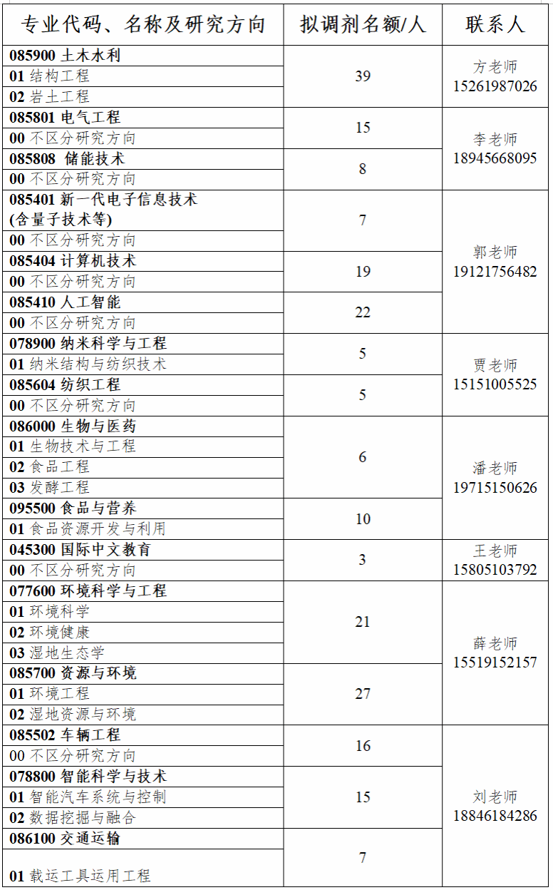 备注:各学科专业拟调剂名额仅供参考,实际招生人数将根据生源情况进行适当调整。